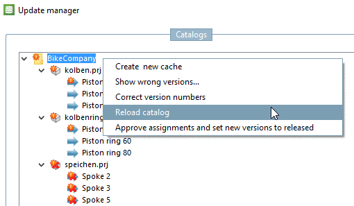The project "Spoke" does not exist anymore (compare Fig. „PARTdataManager catalog "Bikecompany" V1“).