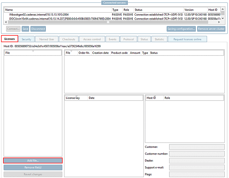 Select the Licenses Tabbed page and click on Add file.... [Add file...] In the Explorer window, select the desired license file.