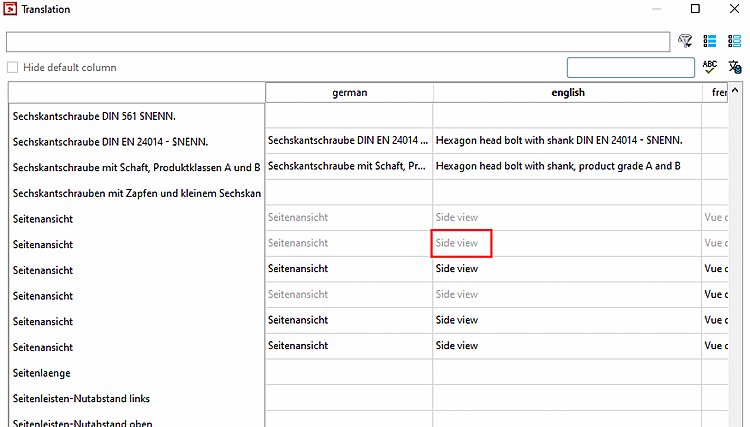 The expressions in grayed-out text are already created/existing translations that are used within other directories and that have been "remembered" PARTproject they are merely suggestions and can either be overwritten or permanently entered using the context menu command Accept suggestion [Accept suggestion] (for a single field) or Accept suggestions [Use suggestions] (for an entire column).