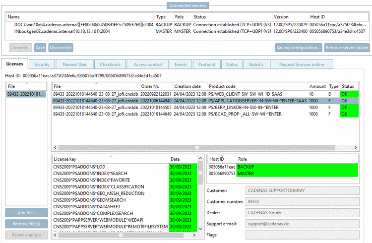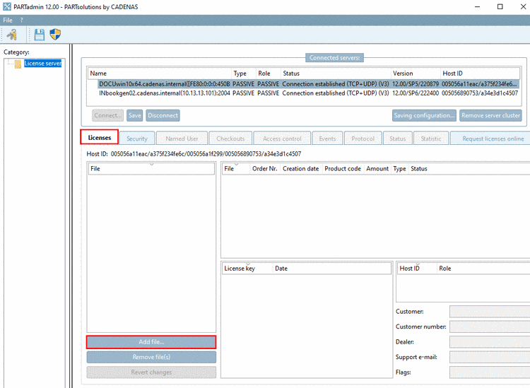 Switch to the tabbed page Licenses and click on Add file.... In the Explorer window determine the desired license file.