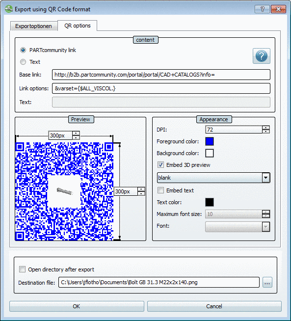 If PARTcommunity link is selected, then the base link, the project path and the link options are automatically combined.