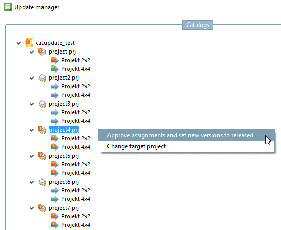 In the Update manager, the complete catalog structure is displayed. Single projects or whole directories can be selected and edited.