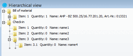 Parts dragged and dropped (folders) can either be stored in the main folders (checkin [Check-in] or parts list [Bill of material] ) or as subdirectories for insertion points - e.g. item 3.1 for within the folder item: 3.