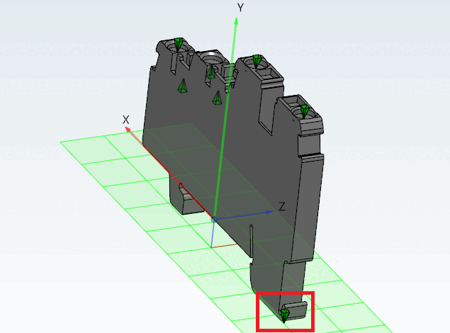 Position the plane on the floor (which will later be the mounting surface in ECAD) so that the outermost point of the part (usually several) touches the plane. The part will therefore not intersect the plane and the corresponding side of the bounding box will correspond to the plane