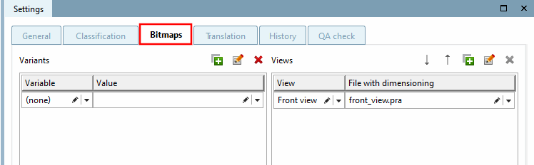 On the Bitmaps tab page, components that do not contain geometry (), dimensioning views [Dimensioning views] can be assigned.