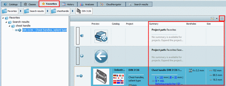 (Markings are set according to the used search parameters.)