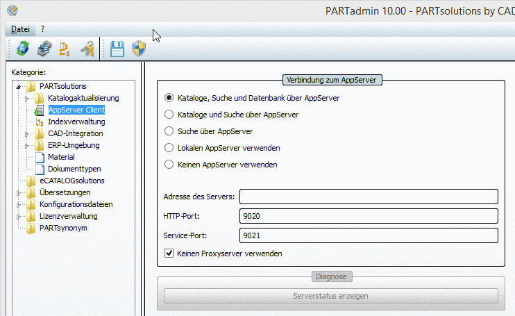 Define 1, if in PARTadmin Catalog browsing, search and database with AppServer either the option Catalog browsing and search with AppServer or the option Search with AppServer is selected.