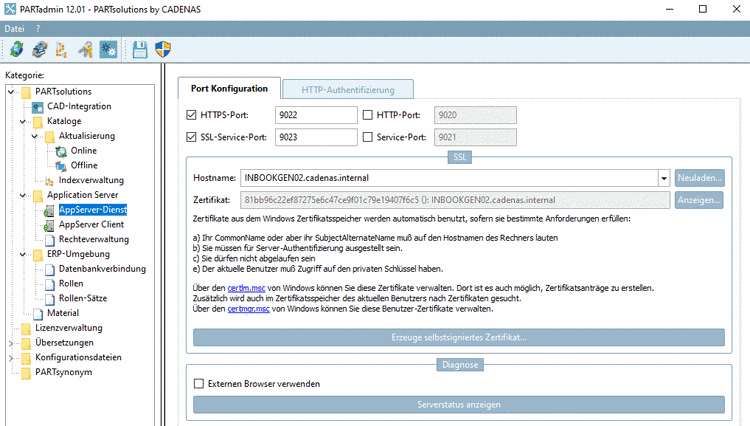 In addition you can also request new certificates, which then also will be displayed in the list field under Hostname.