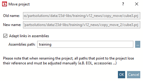 If the projects are not part of an assembly, deactivate the option Adjust references in assemblies [Adapt links in assemblies] (if set) and confirm with .