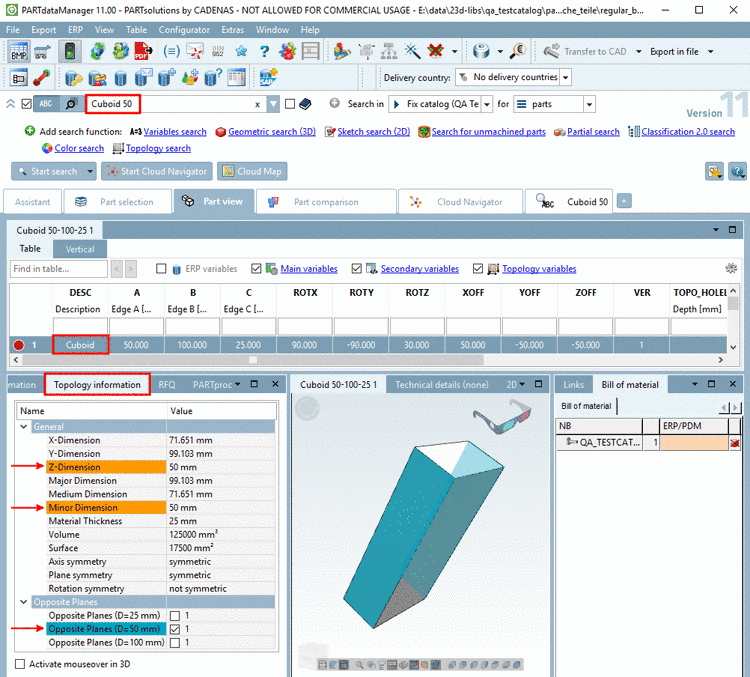 [54] The tolerance is set via configuration file and normally does not has to be changed. See $CADENAS_SETUP/partsol.cfg -> block [FULLTEXTSEARCH] -> key TopologyTolerance.