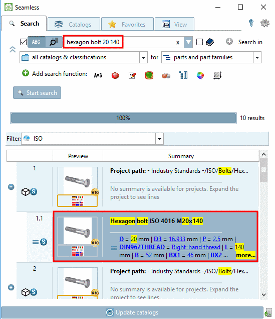 You can focus on certain characteristics already when searching, for example when using Full-text search by stating parameters in addition or by Geometric search (3D).