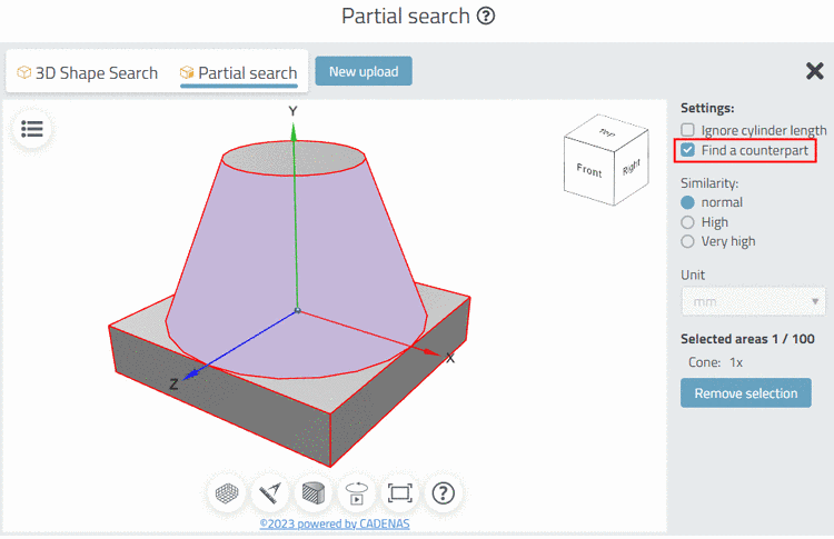 Result parts show "A" and "3" with the same positioning to each other as the search part. Results with the "3" at another position are excluded.