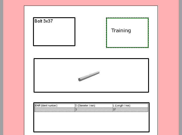 If you only want to get an overview of the complete process at this point, then quickly create only the elements text [Text] (with "$NB."), image [Image] (company logo), 3D view and table [Table] as a rough draft, for example.