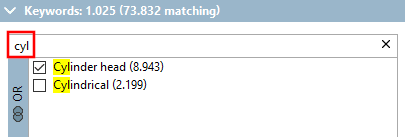 -> In the Filter dialog area, facets are displayed.