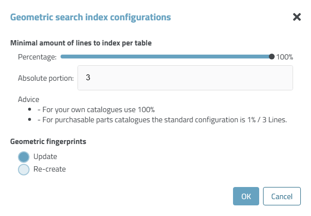When the geometric index is updated, the Geometric search index configurations dialog box also opens.