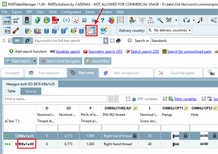 -> Now all rows with L=40 are displayed. Characteristic M8x40 has an ERP number.