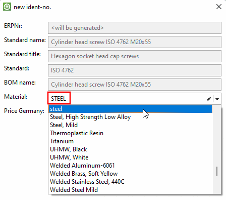 The values are defined in erpcustom.cfg -> block "USERDIALOG" -> key "Material". You can find details on this at Section 4.11, “