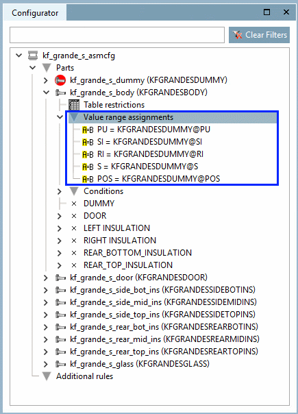 -> The assignments are displayed in the Configurator docking window under the menu item Value range assignments.