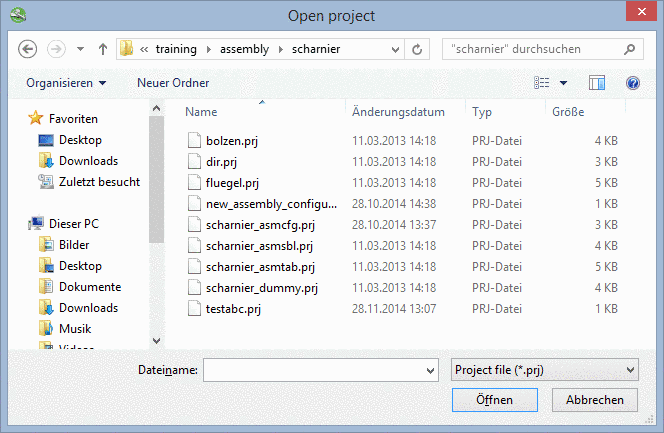 Open: ... opens the Explorer window Open project. There you can select from the created *.prj files.