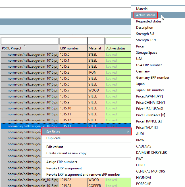 You can see which lines "ACTIVE_STATE=1" applies to (1 stands for "Released") in the PARTlinkManager. In relation to the above example with ISO 4762, these are only a few lines.