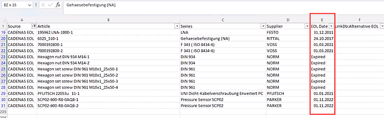 Check in CAD whether the loaded assembly contains end-of-life parts (EOL).