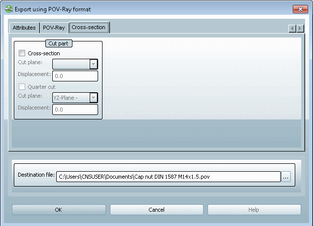 To create a quarter section, activate both the checkbox for cross section [Cross-section] and the checkbox for quarter section [Quarter cut].