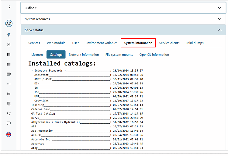 Environment variables: All environment variables of the server are displayed, for example CADENAS_DATA or