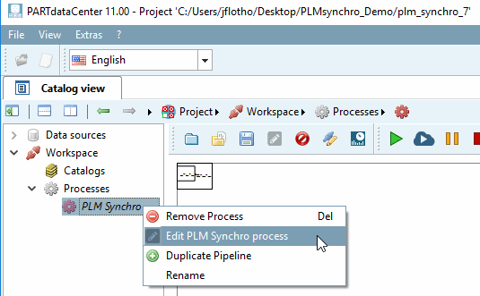 Select the desired process and click on the context menu command Edit PLM Synchro process.