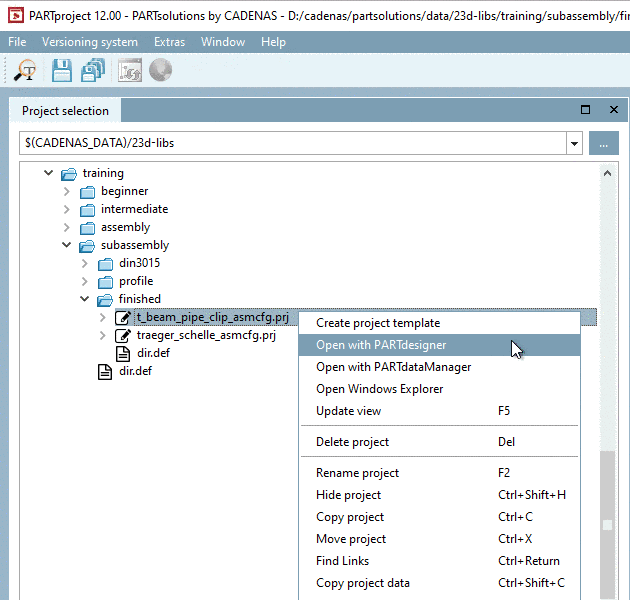 Click on Open with PARTdesigner.