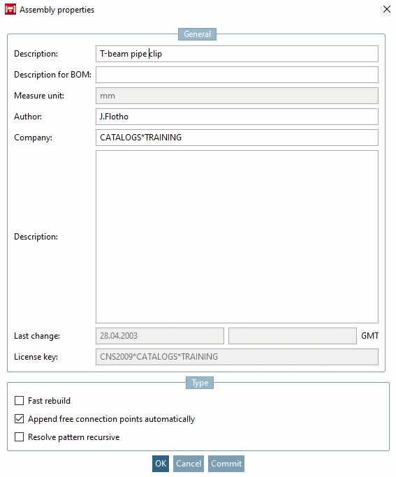 -> The dialog box Assembly properties is opened.