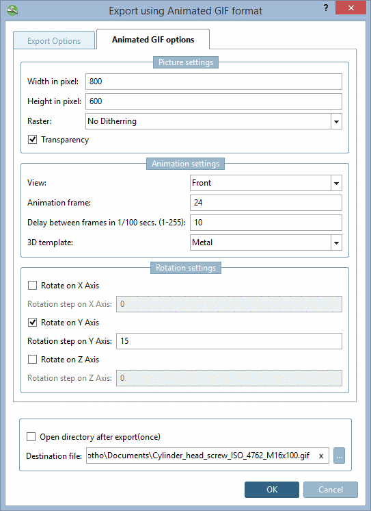 On the Animated GIF options tabbed page, you can find the following settings options: