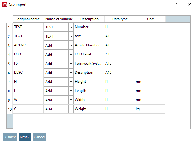 -> The dialog box Csv Import is opened.
