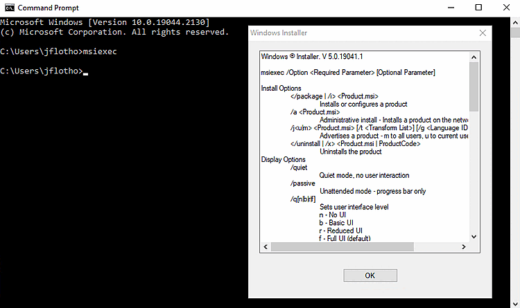 You can see all msiexec specific parameters when you execute the command msiexec in a console.