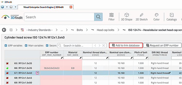 If the function Add [Add to link database] to link database [Add to link database] (also variants) is to be executable in 3Dfindit, the profile LinkDb user. Can add parts to link database. (linkdb-user) must be activated.