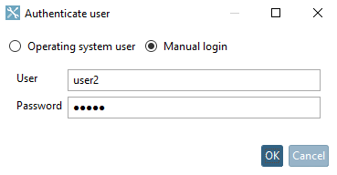 By clicking on Log in [Login], you can check whether the Windows login is correct. If the entry is incorrect, the evaluation is empty. Entering the password is optional.