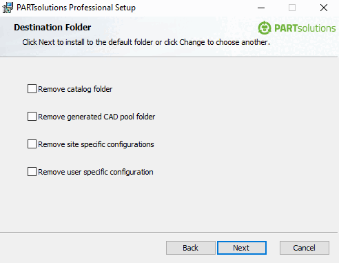 Back up these files if necessary. CADENAS_DATA, CADENAS_SITESETUP and CADENAS_USER remain. So if you really want to remove everything, go to Change -> Remove. |