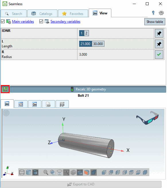 If the table of the accessory part is filtered, the accessory part filter on/off icon appears