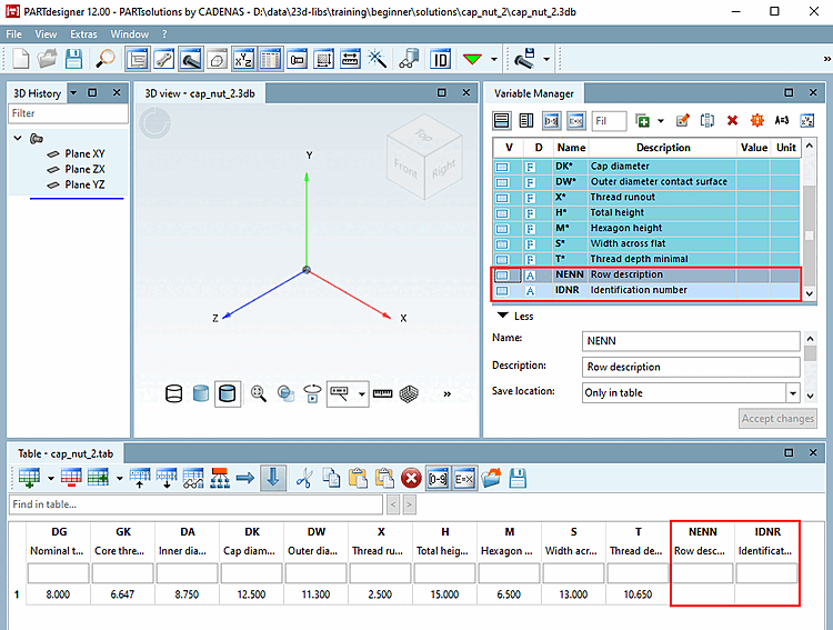 2. Create the variable IDNR with the description [Description] "Identification number" in the same way.