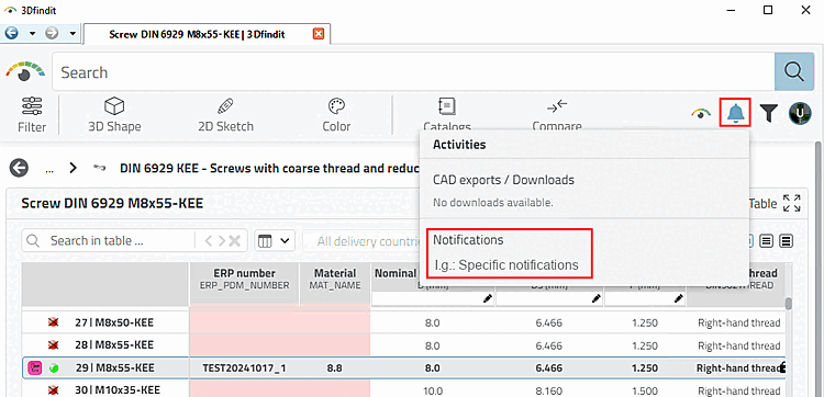 Once the request is finished, the user can be informed via notification dialog (3Dfindit).