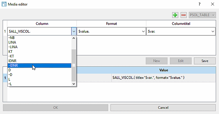 [121] This would be the standard case. Of course, you can also create your own table media variables and reference them in the PARTtemplateDesigner.