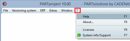In this section you will find PARTproject Action names of menus, menu items, toolbars and buttons.