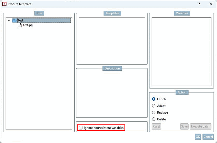 There is a new option Ignore non-existent variables on the Execute template dialog page. If the option is activated, only variables that actually exist in the project are assigned to the classification.
