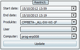 Here you can filter by: Start date, End date, Products, Users [User], Calculator [Computer]
