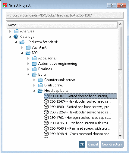 -> The dialog box Select Project opens showing the complete PARTsolutions catalog structure.