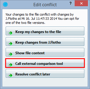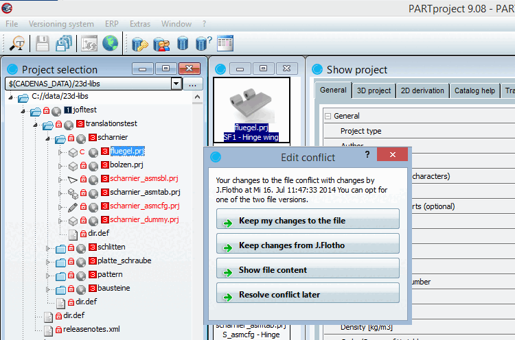 With V9.08 SP1 you will find in PARTproject QA in the context menu under Version management [Versioning system] additionally the command Edit conflict (only in case of conflict).