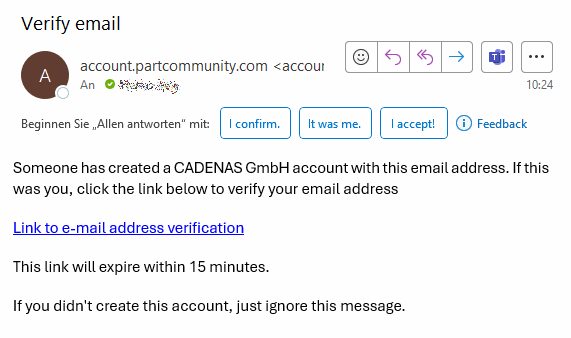 Confirm the e-mail address in your e-mail account and then click on "Click here to continue".