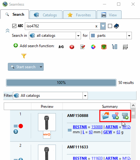 Adding [Add to part compare] and opening for component comparison [Add to part compare] are standard.