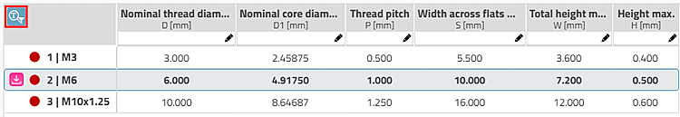 In manufacturer catalogs, not all table rows are indexed for the products, but only 1% of the table rows or at least 3 rows (the first, the middle and the last) in the delivery state. If you use the photo search, only these rows are primarily displayed in the results. However, if you combine the photo search, e.g. with a text or variable search, the precisely specified rows are displayed; the geometric similarity value is not real, but the similarity value of the nearest row from the photo search is displayed. You can recognize this by the tilde symbol and, on mouseover, by the tooltip information.