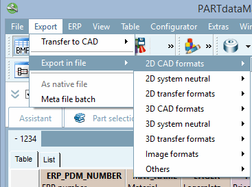 The following 2D CAD formats and 2D system-neutral [2D system neutral] formats are available for export without the 3Dfindit interface:
