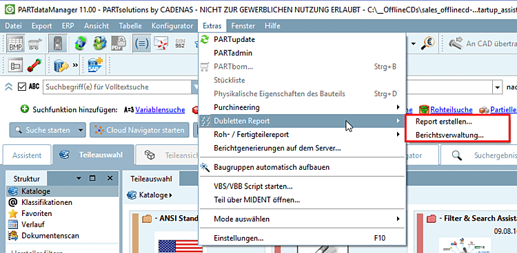 ![Submenus of "Create report [Create report...]..." and " Report management. [Report management...].."](https://webapi.partcommunity.com/service/help/latest/pages/en/partwarehouse/doc/resources/img/img_6712943195ac46e0a5cfdd678f069468.png)